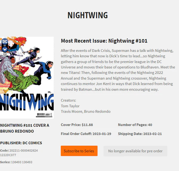 Please either subscribe to a series or preorder an individual issue - don't do both unless you want multiple copies of the same comic.