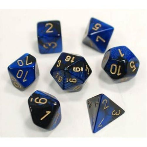 CHESSEX 7 DIE POLYHEDRAL DICE SET: GEMINI BLACK BLUE WITH GOLD