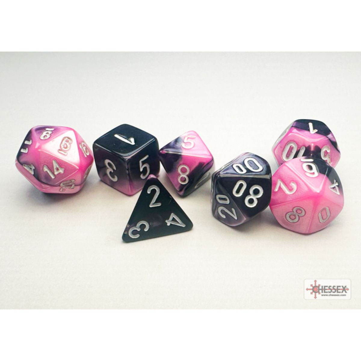 CHESSEX MINI 7 DIE POLYHEDRAL DICE SET: BLACK - PINK/WHITE