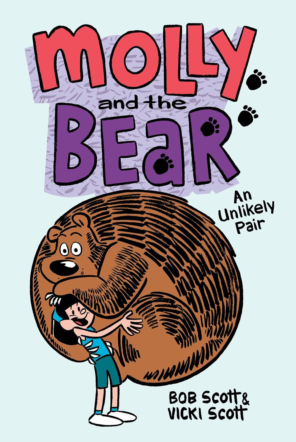 Based on the beloved comic strip ‘Bear with Me’ by Bob Scott, this lighthearted odd couple middle grade graphic novel is about a girl and her very best friend: an 800-pound scaredy-bear! When Bear wanders into eleven-year-old Molly’s life, she knows she’s just met her new bestie. Loyal, sweet, inquisitive―and terrified of almost everything―Bear makes a great new friend. And he’s not scary at all! But try telling that to the rest of the world. Molly eventually convinces her mum and dad to let Bear stay with them, but showing everyone else that Bear isn’t dangerous (not to mention assuring Bear that he isn’t in constant danger!) is going to take some work. Lucky for Bear, Molly doesn’t give up easily.