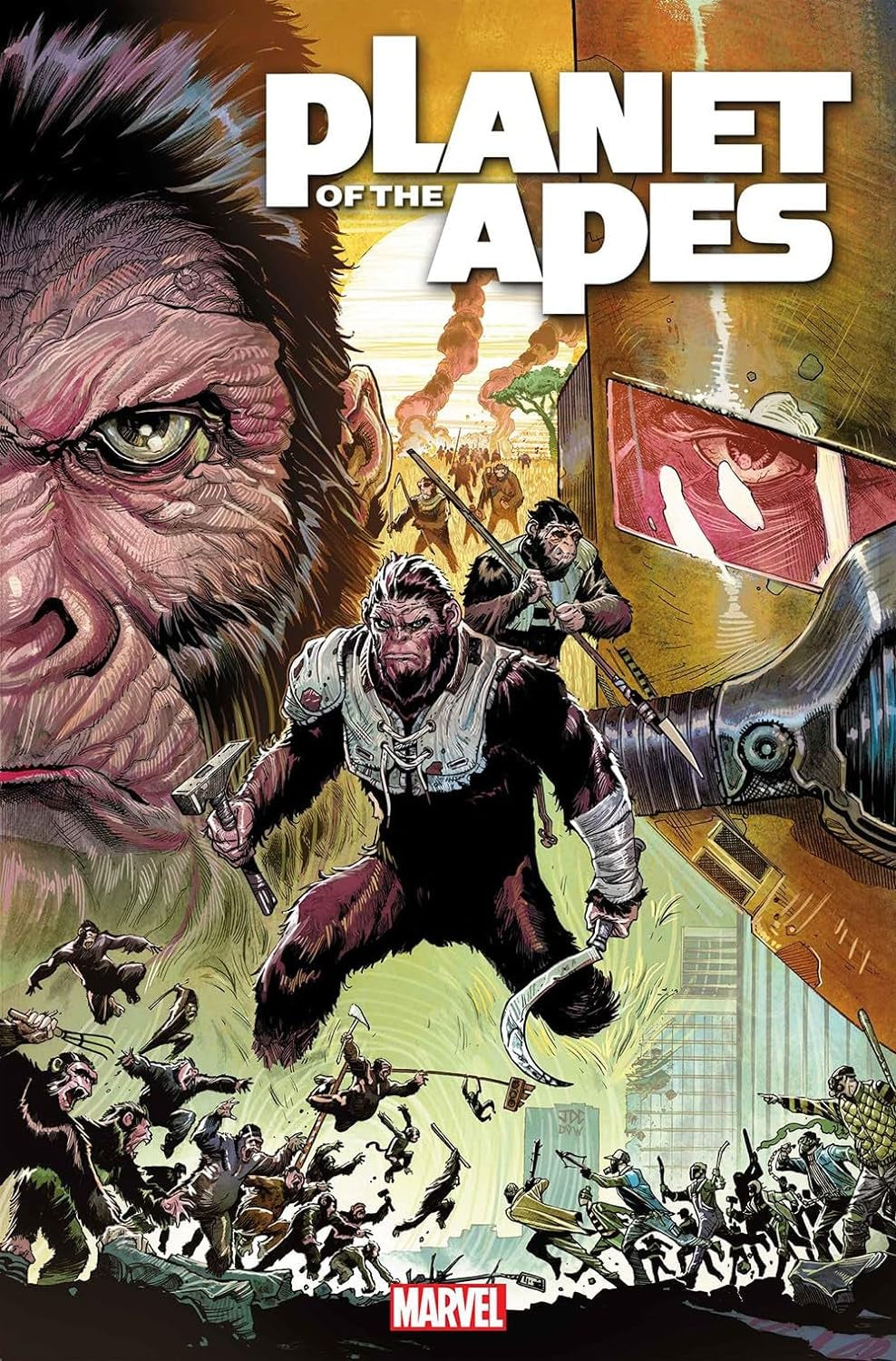 One of the most beloved franchises in sci-fi history returns to Marvel Comics! It's been years since the "simian flu" first spread. The ALZ-113 virus has rampaged across Earth - and while apes are flourishing, humanity is crumbling. As researchers hunt for a cure, a fanatical group of humans has their own solution: kill all apes! Peacekeeper Juliana Tobon is one of the few willing to stand against them, but the crisis is escalating - and soon apes will witness the true depths of human cruelty. But with groups of apes in Europe, Africa and Asia continuing to grow in intelligence and power, the threat of simian domination of Earth becomes increasingly possible. Can apes and humans ever coexist? Or will all hope of peace lead to a dead end strewn with blood and death? Collecting PLANET OF THE APES (2023) #1-5.