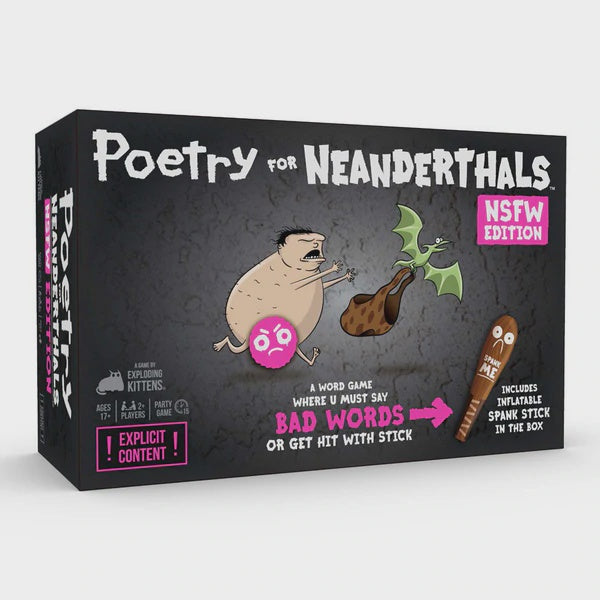 Poetry for Neanderthals is a adult party game similar to Taboo where players earn points by getting their teammates to guess words and phrases. The catch is that the "Neanderthal Poets" are only allowed to use single syllable words. If they use any words with more than one syllable, the other team gets to bop them with a 2-foot inflatable club. The team with the most points wins!